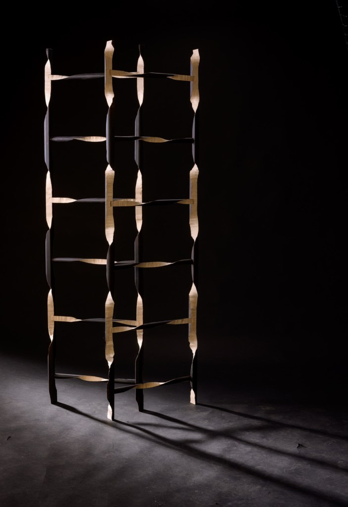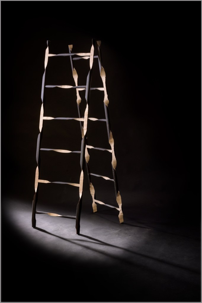What happens when you cut an object – not destroy it, but open it? This series is about that very moment: When new forms emerge from a stool, a ladder, or a block through curved cuts – with an in-between that was previously invisible. I am interested in the space in between. The things that are not wood – what we usually overlook. If we took all the nothingness out of the world, only a pinhead would remain. This thought accompanies me: How much there is in between – and how little significance we attach to it. The cuts make visible what has always been there: emptiness, tension, relationship.