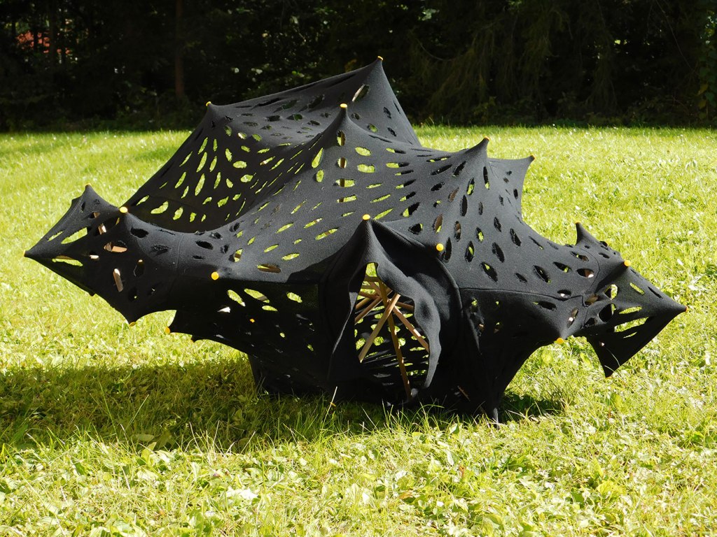The elastic objects made of fabric respond immediately to the forces acting upon them. They bend, arch, and stretch. They speak of the process, of searching and balancing, of the constant change.
